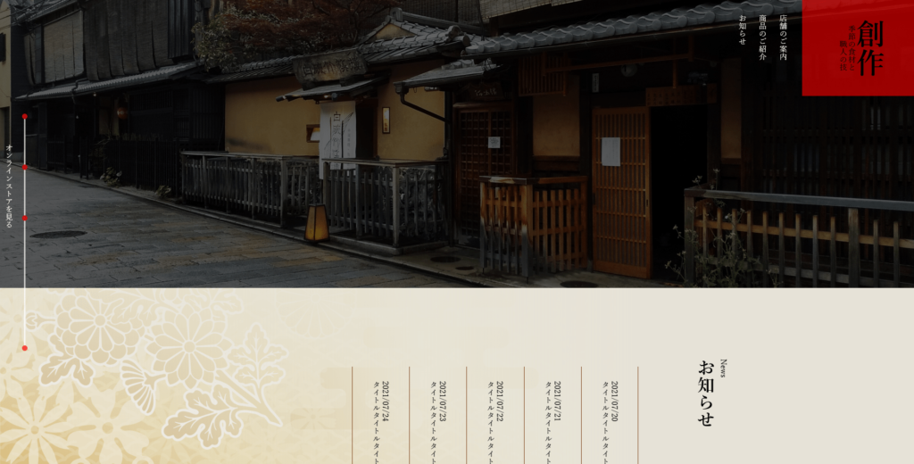 全体的に縦書きのレイアウトを採用しており、和風なテイストになっています。